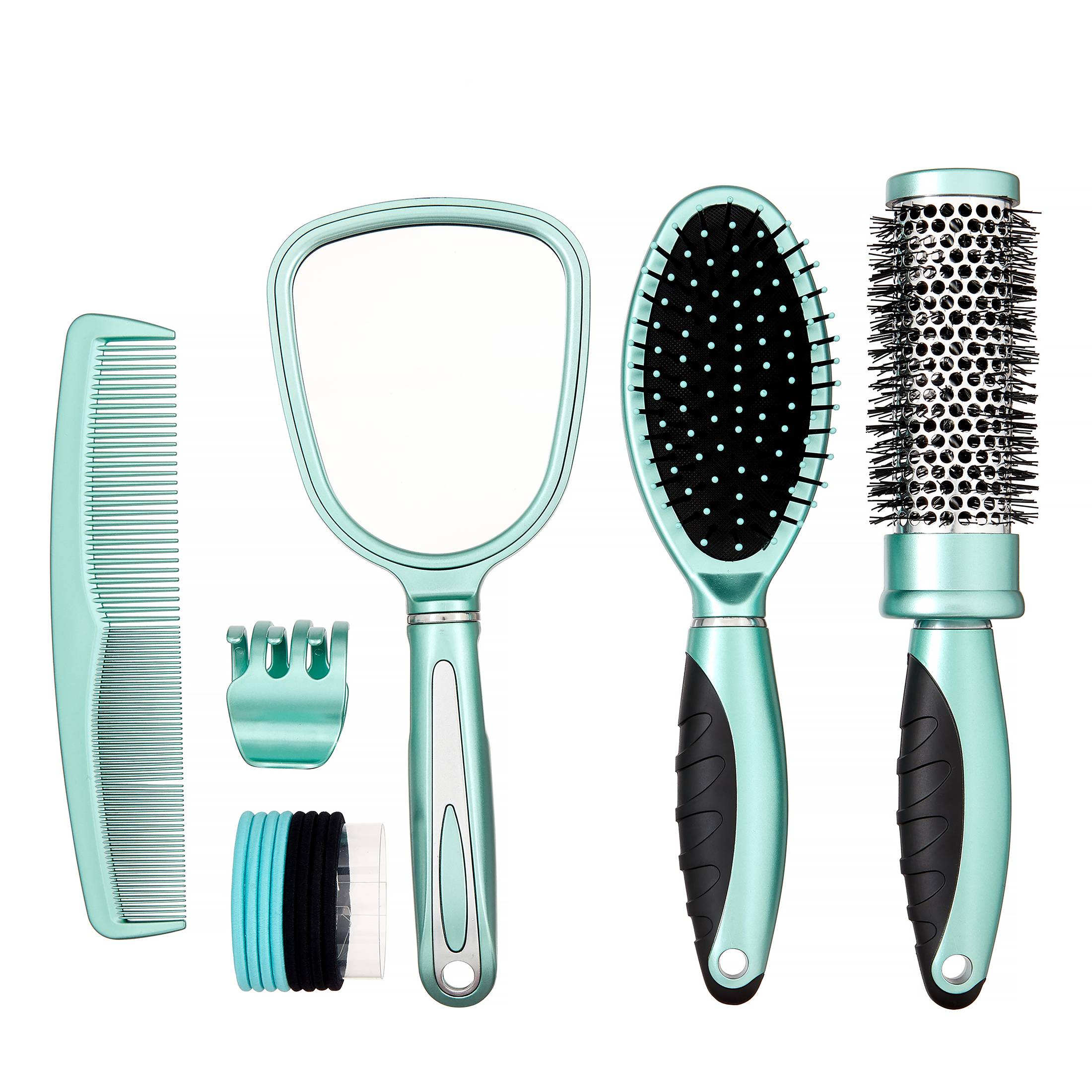 Salon Hair Brush Styling Gift Set With Hand Mirror Teal 13 Pieces Walmart Com